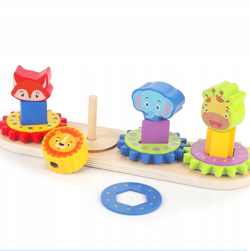 Drewniana Wieża Piramidka Zwierzątka Montessori